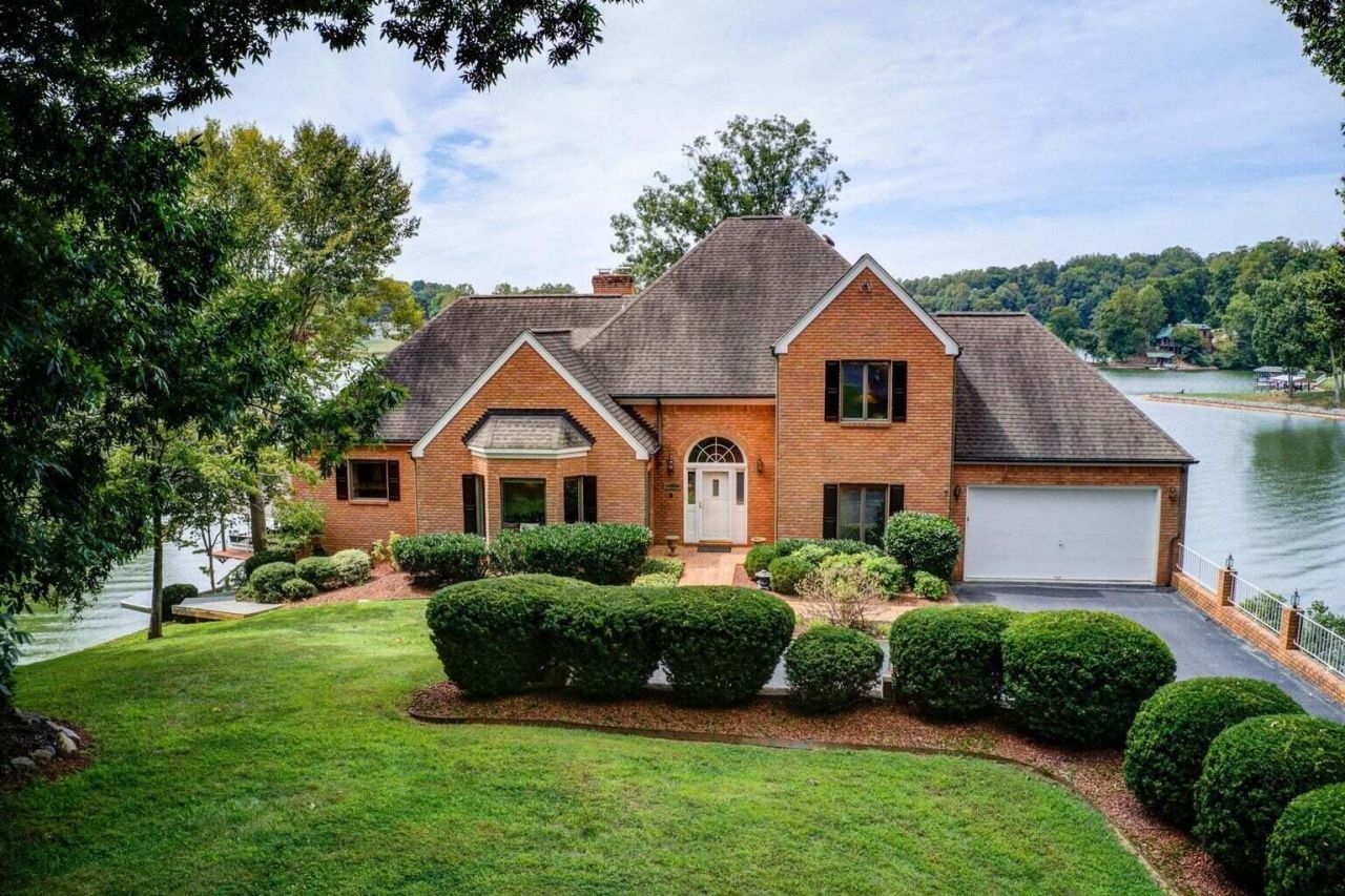 Exceptionally rare point lot at Smith Mountain Lake--447' of waterfront, a private sandy beach, and protected coves on BOTH sides for swimming.This stately all-brick home captures breathtaking long-water sunset views from nearly every room, while enjoying the calm of a tucked-away setting on the main channel... the best of both worlds.A gentle walk leads to a fully renovated composite dock with boat lifts, deep water (15+ ft), multiple lounging areas, and exceptional entertaining space. Inside, the home has been thoughtfully updated with a main-level primary suite, 270-degree water views from the morning room, a 4-season screened/glass porch, and multiple gathering spaces throughout.Opportunities like this are extraordinarily rare... a true legacy lake property.